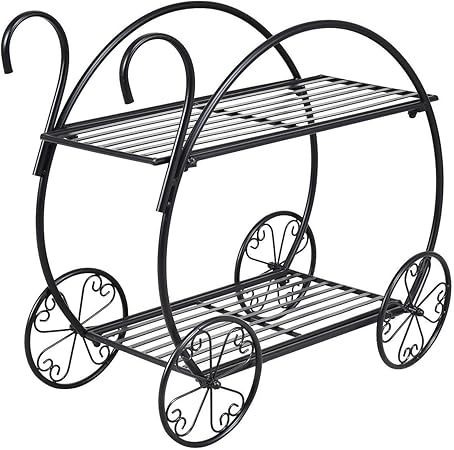 Pure Garden 2 Tier Decorative Black Metal Garden Cart And Plant Stand Hw1500184 The Home Depot from images.homedepot-static.com